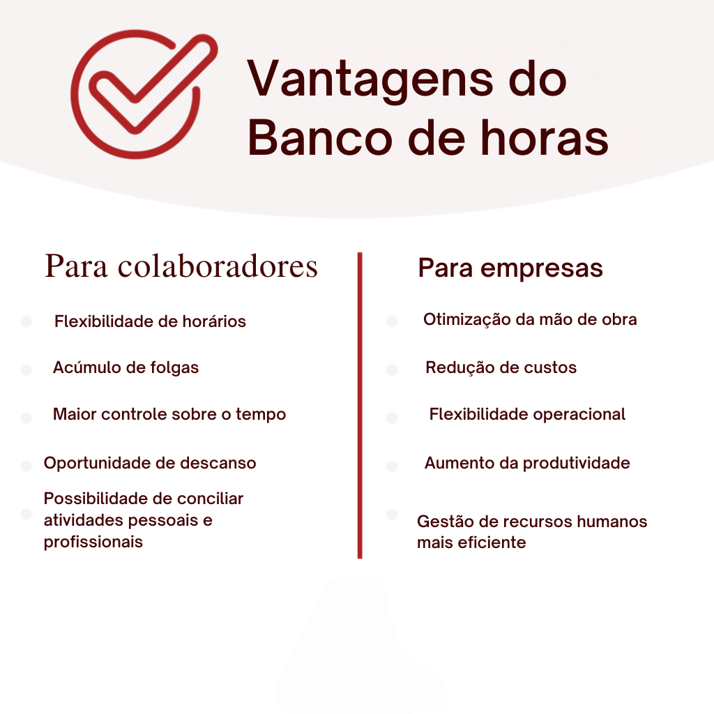 Pense no banco de horas como uma poupança de tempo que, em vez de receber dinheiro pelas horas extras, você deposita essas horas num saldo. Depois, pode resgatar esse tempo em forma de folga ou saída mais cedo.